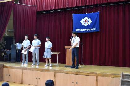 また、陸上競技で、8月に福井県で行われる全国中学校体育大会に出場が決まった3選手の激励も行いました。