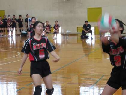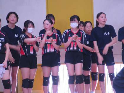 この九条中の勢いに大きく立ちはだかったのが、相手エースの繰り出すサーブでした。強さ、コースとも抜群のサーブに苦戦する九条中。一気に逆転を許します。