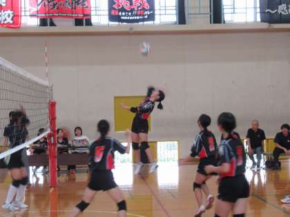 開始早々、先制点を取られますが、ここでFさんがスパイクを決め、すぐに追いつきます。点を取り合って、2−2です。チャンスはある!