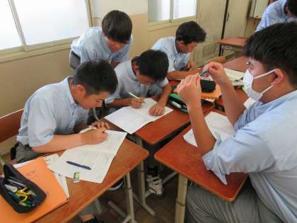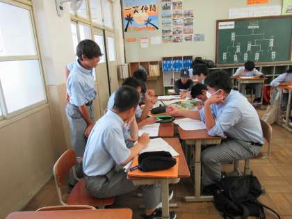 2年生では、英語のグループ学習と数学のプリント学習に取り組む様子が見られました。教え合いや答え合わせも取り入れ、自分たちで学習できていますね。