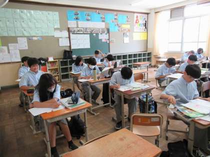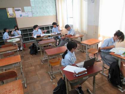 1年生では、主に社会科の学習をグループワークや先生への質問も交えて進めていましたね。美術のデッサンに取り組んでいる生徒さんもいて、各教科の課題に頑張っています。