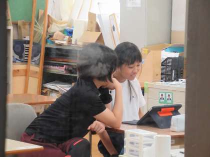 4・5組の教室では、今日も1年生の2人が、落ち着いた様子で学習していました。いつ覗いても本当に熱心に学習しています。すごい集中力です!