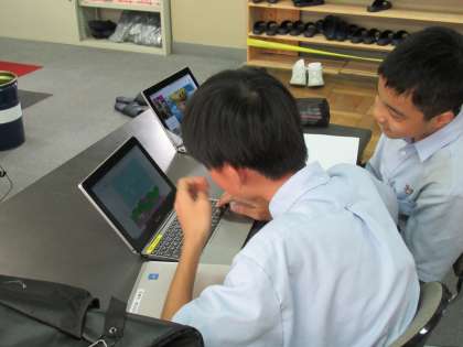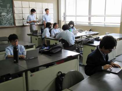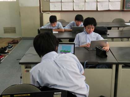 本日、コンピュータ部の活動の様子を覗かせていただきました。夏休み中も、積極的な活動の様子が見られます。