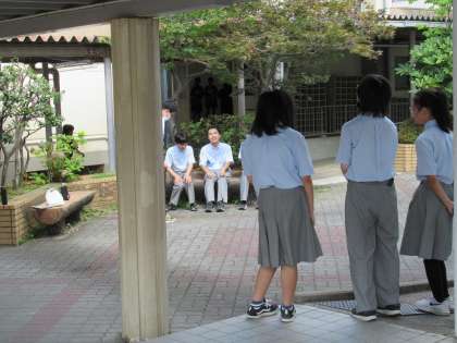 コンピュータ部が撮影している様子を、取材班が撮影していると、3年生Oさんが「それをさらに撮影している人がいたら面白いですね。 」なんて話をしてくれました。撮影の数珠つなぎですね。