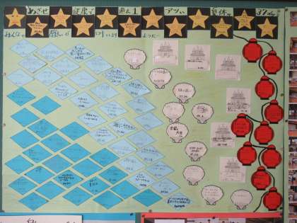 1年生では、夏休み前に「めざせ 健康で 過去1 アツい 夏休み 37days」と題して、夏休みの計画や願いなどを書いてくれていましたね。