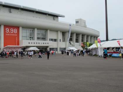 本日(8/19)、取材班が9.98スタジアムに到着するなり声をかけてくれたのは、3年生M・Yさんです。広い敷地にたくさんの人が行き交う中、よくぞ見つけてくれました。出場種目の開始まで4時間以上ある中で、どのようにコンディションを整えていくか、晴れ舞台に向けて気合い十分です。