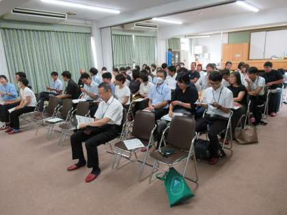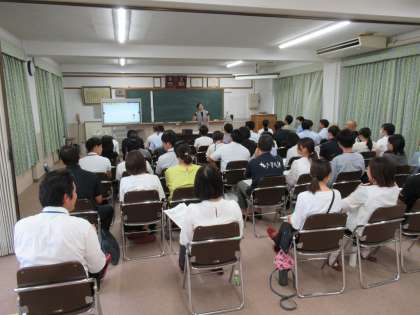 本日(8/21)、小中合同の教職員研修会を実施しました。これは、九条弘道小学校と九条塔南小学校と九条中学校の教職員が一堂に会して行う勉強会です。