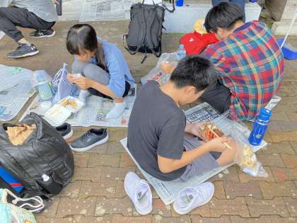 4・5組の皆さんを乗せたバスは、予定通り花背山の家に到着し、昼食のお弁当タイムとなったようです。