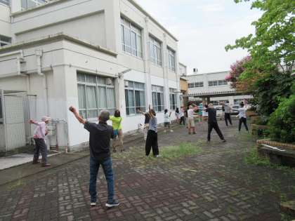 本日(8/25)も学校では、早朝にラジオ体操(最終日)を、また午前中にふれあいサロンで学区の研修会を実施していただきました。地域の皆様、ご苦労様です。
