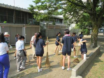 開始式の後、九条中から参加の皆さんは、担当の公園に移動して、いよいよ清掃活動の開始です。地域の方からの説明を受け、積極的に働いてくれます。素晴らしい!