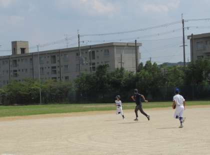 5番Nさんがセンター前ヒットで出塁すると、2塁盗塁、3塁盗塁と更にチャンスを作ります。結局、得点にはつながりませんでしたが、継続した攻めでよい流れを作り守備につなげていきます。