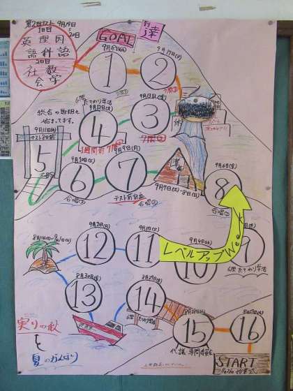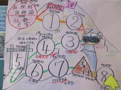 8/26(月)始業式の日をスタートに、9/19(木)・20(金)テスト当日をゴールとして、見通しがもてるように示してくれています。