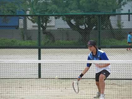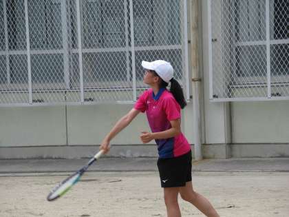 3本目には1年生Nさん出場のM・Nペアです。こちらは、2人ともミスはあってもそれをお互いに補うナイスプレーで、見事、ゲームカウント3−1で勝利を収めてくれたとのことです。えらい!