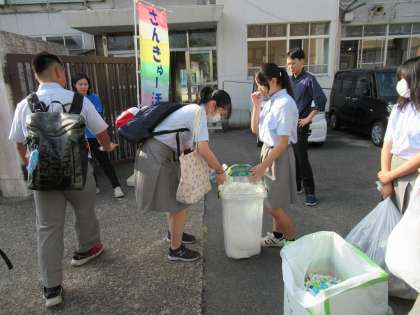この回収運動は、普段から意識してその都度ためていくものなので、1つ1つに思いが込められていることになります。今回は、たくさんのコーヒー缶を持ってきていただいた先生もおられました。缶もいっぱい、思いもいっぱいです。
