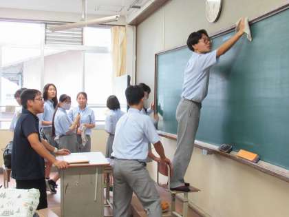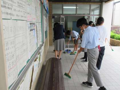 掃除も、気持ちも、学年を越えて交流できるいい機会です。1年生が、3年生の教室の机を丁寧にそろえている姿に感動しました!そして、掃除も楽しんでいる様子も、いいね!