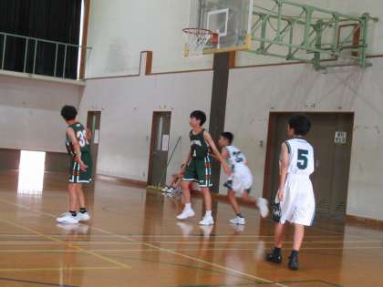 立ち上がり、粘り強いディフェンスでついていった九条中ですが、徐々に相手のシュートが決まり出します。それでも、すぐさまPGの1年生Kさんからのパス回しで反撃に移ります。