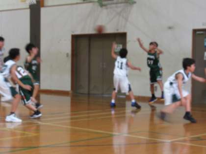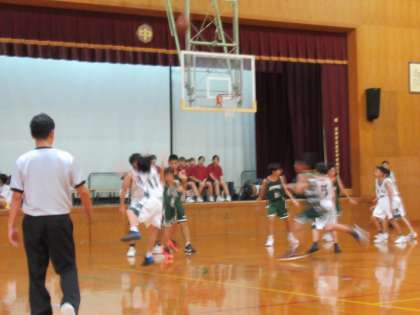 最終第4クオーターは、みんなが全力プレーです。1年生のYさんやIさんも、ボールに食らいついていきます。まさに力を出し切る動きに、ベンチや応援席も一緒になって声援が送られます。すごい!