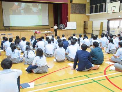 講師の助産師さんは九条中学校の大先輩、また児童館のスタッフの方も生徒の皆さんにとってはなじみのある方も少なくありません。そんなつながりの中で、「自分が生まれたということ」について、どんどん思いが深まっていきます。