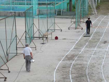 本日放課後、教職員の皆さんが、明日の体育祭学年練習に向けての準備をして下さいました。グラウンド整備やライン引き、音響設置に草刈りまで、本当にありがとうございました。