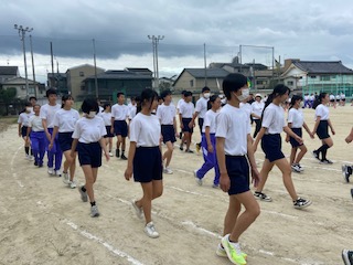 今日の1時間目は、体育祭に向けての全校練習でした。過ごしやすい気候となってはいるものの、朝晩と日中との寒暖差がありますので、体調に気を付けてくださいね。
