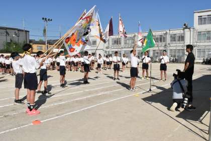 旗手の皆さんも、パワーを送るかごとく、自分たちの学級旗を掲げてくれました。