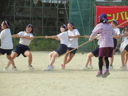 こちらも3年間の思いを込めて、力の限り綱を引く3年生の姿がありました。素晴らしい対戦でしたよ。