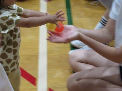 今回は、1歳から3歳の乳幼児親子11組の皆様に来ていただきました。最初はどんな風に関わっていいか戸惑ったり、抱っこをしたら泣き出したりと、思うようにいかない3年生ですが、ハイタッチやボール遊びなどを通して、徐々に子供たちとの関りができてくると、もう可愛くて仕方ありません!