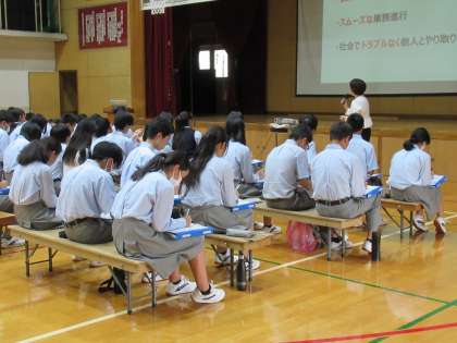 実は、昨日の2年生の「マナー講座」で、丁寧な挨拶について、次のように教わったのです。