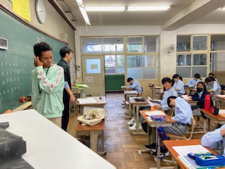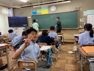ALTの先生とともに授業を始めるようです。みんなもどこかそわそわしているように見えますね。どうやらクイズの準備をしているようです。