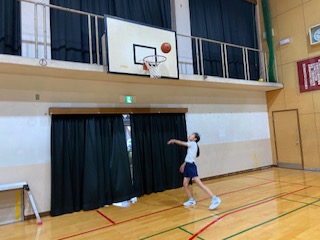 体育館では、4・5組がバスケットボールに取り組んでいました。ドリブル練習では、「右!左!右!左!」とコントロールしている場面もみられました。シュート練習も積極的にチャレンジしていました。果敢に何度もチャレンジしてシュートが決まっても、繰り返しシュート練習をしていましたね。
