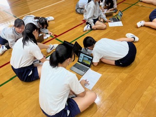 体育館では、3年生が熱気溢れる動きで、バスケットボールの授業に取り組んでいました。とても声が出ていて、主体的に授業を受けています。