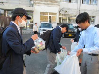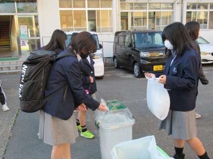本日、登校時に、生徒会の取組である「エコキャップ・アルミ缶・使い捨てコンタクトレンズケースの回収運動」が開催されました。