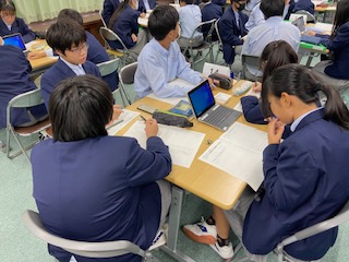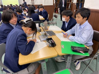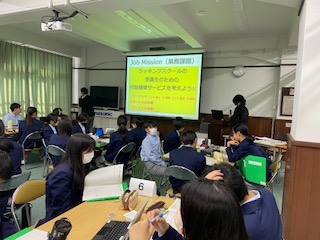 個人思考のあと、グループワークの時間がやってきました。話合いの記録をしながら、サービスの内容を決めていきます。