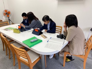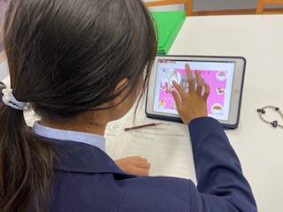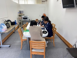 こちらのブースでは、企業のポスター制作に取り掛かっています。4・5組の皆さんは、タブレットで上手にポスターを作成しています。普段の「お店屋さん」学習が、生きていますね。ポスターに入れる内容を確認しながら、創意工夫しています。