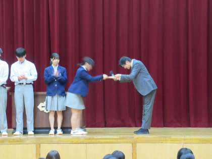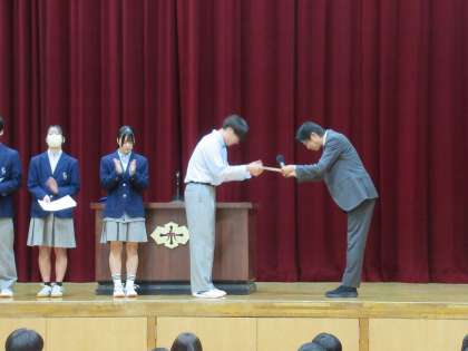 続いて、後期学級役員の認証式が行われ、3年生が代表して受けてくれました。「3年生、最後までよろしくお願いします!」