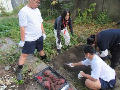 本日6限には、4・5組菜園で、サツマイモの収穫を行ってくれました。