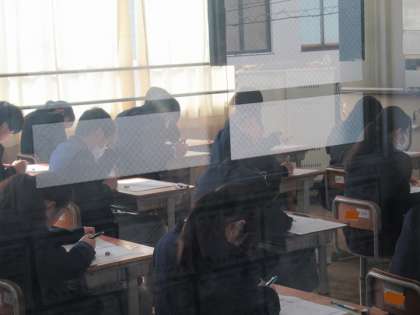 今度は、2年のフロアにやってきました。こちらも、し〜んと静かな中で、鉛筆を走らせる音だけが聞こえてきます。勉強の成果が存分に発揮できるよう、応援しています!
