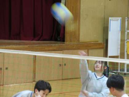 今回は、障碍者スポーツから学ぶ意味で、実際に、シッティングバレーを教えていただきました。
