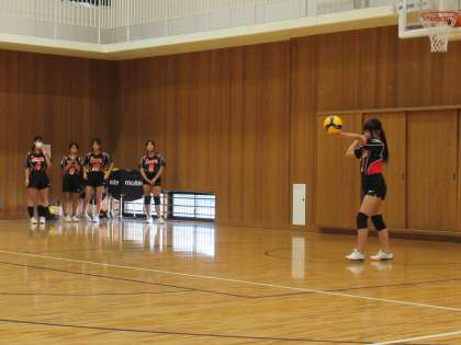 第1戦の相手は、K中学校です。立ち上がり、お互いに気合いの入った声出しから試合開始、点数も取り合い流れを掴もうと競り合います。