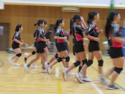 第2セット、九条中は最後まであきらめず善戦しましたが、残念ながら15−25で落とし、第1戦を勝利することはできませんでした。