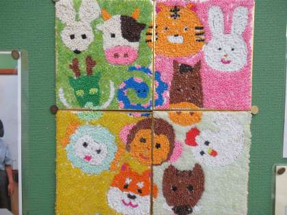 その中の一つに「ビーズアート」があります。これがまたすごい!4人それぞれが作ったプレートを合わせて、1つの作品になっているのですが、接続の部分が見事に合っていますね。丁寧な学習の成果が出ています。