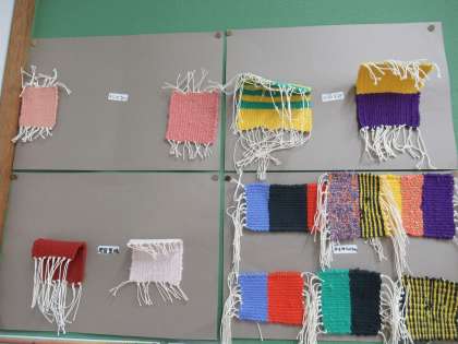 また、「手織りコースター」も、それぞれの個性を出して仕上げられています。一生懸命に授業に取り組む、4・5組の皆さんの姿が目に浮かびます。続けてください。