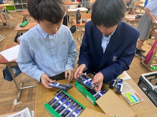 1年2組で数学の授業終わりに、返却されたコンパスを、番号順・裏表などに気をかけながら、片付けをしてくれました。全員には伝わりづらいかもしれないけれど、2人の気配りが伝わってきました。YさんとYさん、ありがとうございました。
