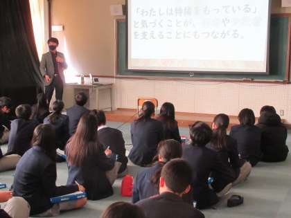 本日、2時間目となる2年生の人権学習は、講師の先生をお招きし、人権についてみんなで考える時間をもちました。