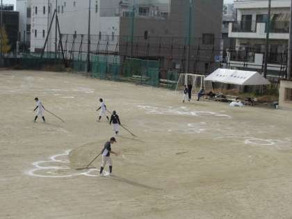 今日、野球部の皆さんが、練習終わりに、凍結防止剤をグラウンドに撒いてくれました。ありがとうございます!