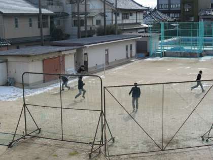こちらは3年生です。1時間目あっという間にうっすら積もった雪をかき集めての雪合戦です。寒い外が暖かく見えたのは、彼らのおかげでした。ありがとう!