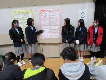 本日5〜6限に、1年生が、小学5年生の皆さんをお招きし、職業調べのポスターセッション発表会を開催しました。