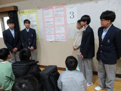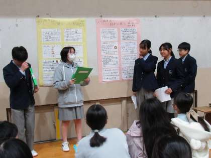 1年生の皆さんは、グループごとに、その職業を調べようと思った理由、仕事内容、やりがい、その仕事を必要としている企業、給料・コンセプト・保障制度などについて調べ、まとめていました。