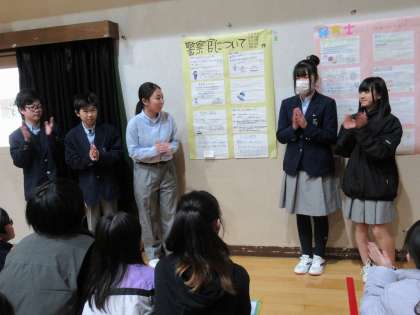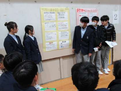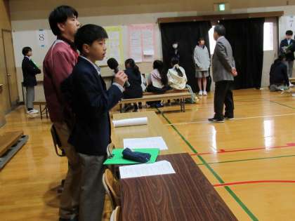 前半の8グループが、2回の発表を終えました。ポスターセッション発表会も後半へ移っていきます。もちろん司会進行も学級役員さんが分担して進めてくれていました。