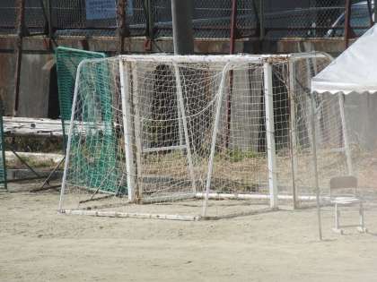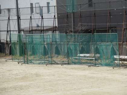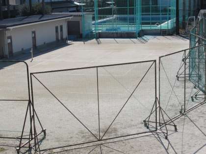 授業で使っている小型のゴールが向かい合せで置かれ、大型の防球ネットが一か所に集められ、テニスコートはネットも外し整頓されていました。生徒の皆さんと先生方が協力して、安全を保ってくれていることがわかります。